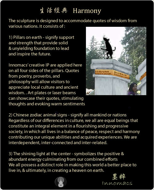 1) Sculpture: Artistic pieces that convey cultural messages and themes,reflecting the local culture and history, creating landmarks that build community pride. This platform is intended to accomodate 48 quotes of wisdom on each side of the marbel panels in the public to inspire visitors .