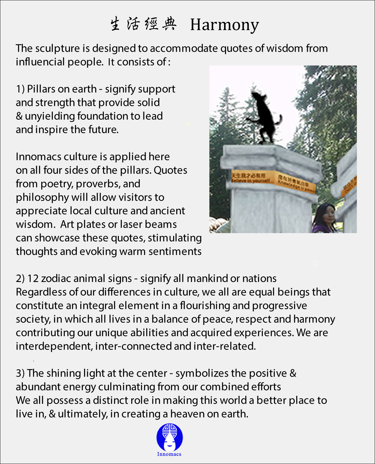 Sculpture: Artistic pieces that convey cultural messages and themes,reflecting the local culture and history, creating landmarks that build community pride. This platform is intended to accomodate 48 quotes on each side of the marbel panels in the public to inspire visitors .